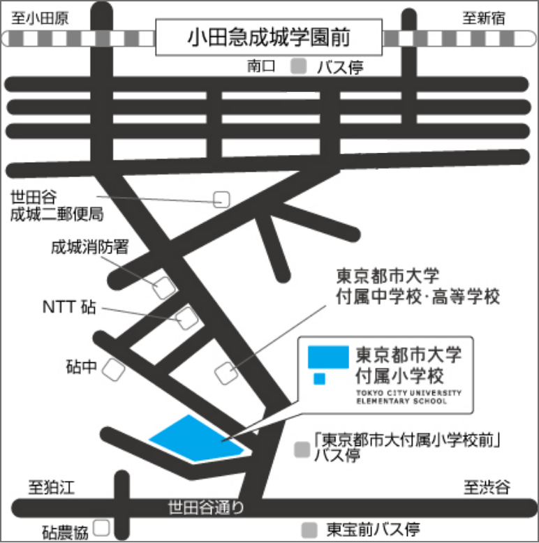 成城学園前行バス→「東京都市大付属小学校前」下車