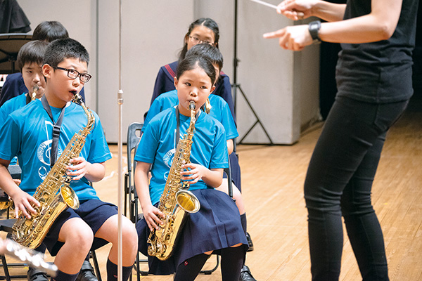 日頃の練習の成果を大きな舞台で発表します。友だちの奏でる音を聴き、よりよい響きになるよう自分も努力することで、仲間を創りあげるハーモニーや音楽の楽しさ、達成感を味わいます。また、発表会は普段使うことがないような大きな舞台で行われます。