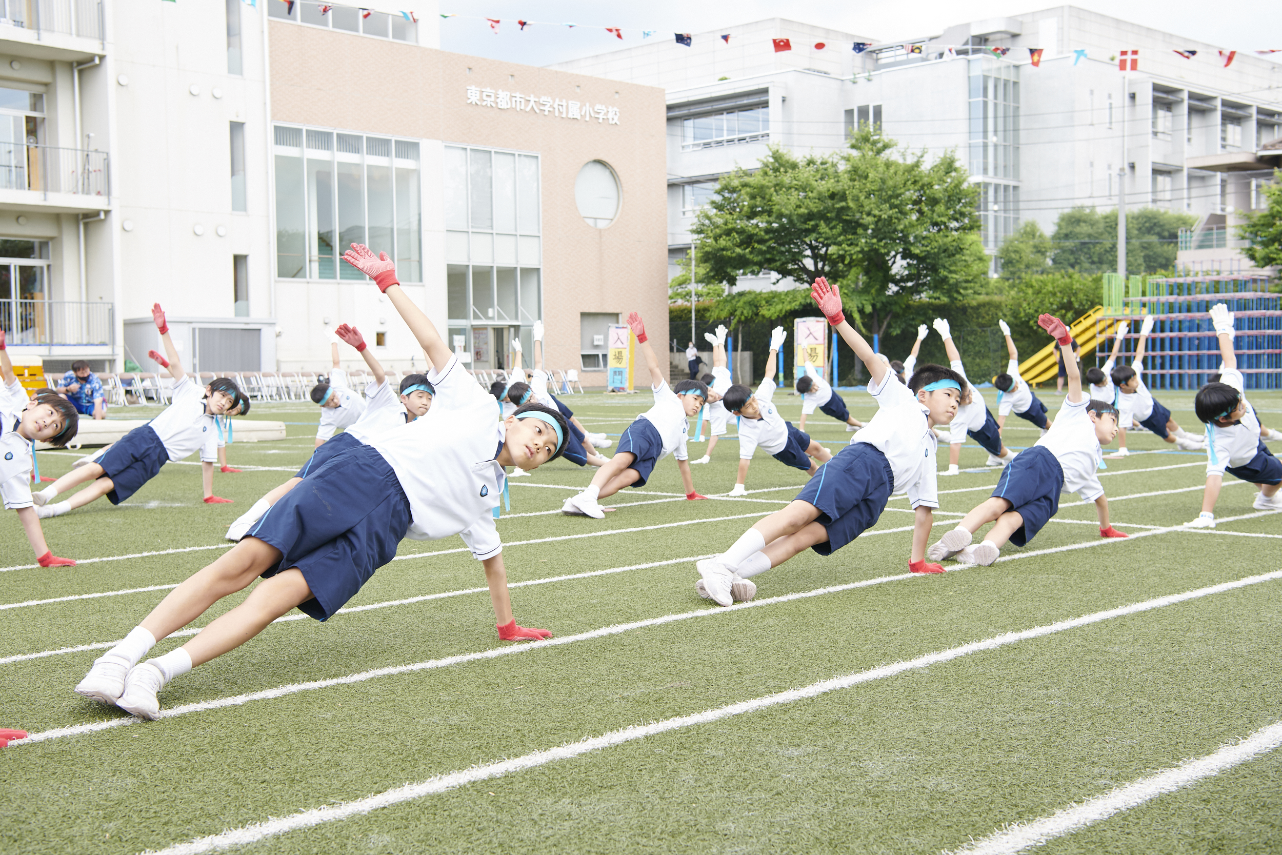 音楽発表会とあわせて本校の二大行事の一つとして位置づけられる運動会。新学期が始まるとすぐに練習が始まります。練習を通して技能の習得・体力の向上を目指すだけでなく、競争や協同の経験を通して、公正に行動し、約束を守り、互いに協力し責任を果たすなどの社会生活に必要な集団意識を培います。