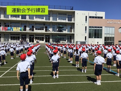 快晴の澄み切った天気のもと、運動会の予行練習が行われました。