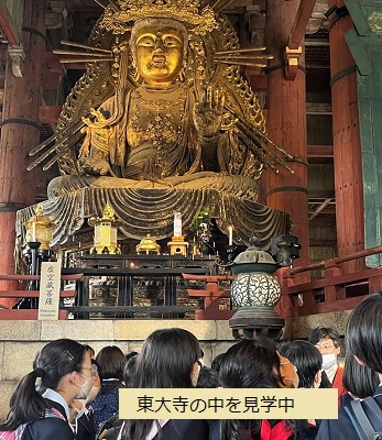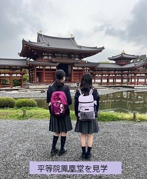 修学旅行2日目は、奈良から京都へ。飛鳥、奈良、京都と時代の移り変わりを感じながらの移動です。時々雨にも降られましたが、東大寺では、名物ガイドさんからの講話を興味津々で聞き入りました。京都へ移動し、平等院鳳凰堂を見学しています。移動中のバスの車内も楽しく過ごしています。