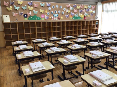 第68回入学式開式前の1年生の教室。新入生を迎える準備が整い、清らかな朝を迎えました。