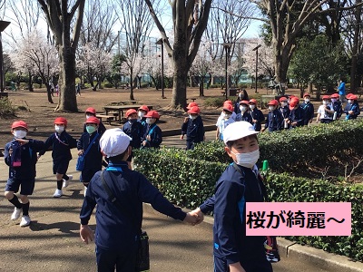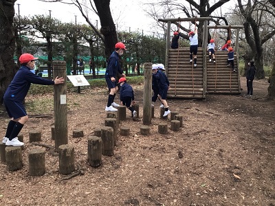 2年生は、大蔵運動公園アスレチック広場へ出かけました。遊具の乗り方や遊び方を工夫しながら時間を忘れて午前中いっぱい遊びました。汽車のある公園への移動中は、モクレンや早咲きの桜も満開で、たくさんの春を見つけました。もうすぐクラス替え・・・親睦を深めることができてよかったですね。