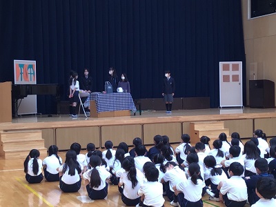 先日行われた5年生の演劇部による現代劇に続き、本日の20分休みは、4・6年生の演劇部による「小公女セーラ」の発表がありました。
