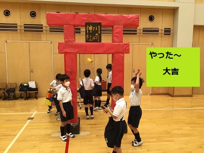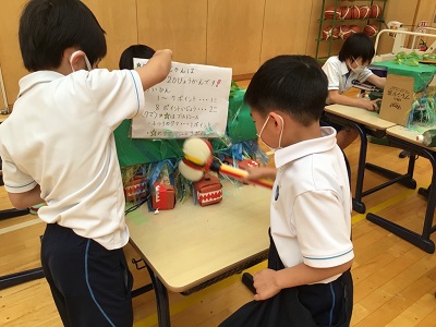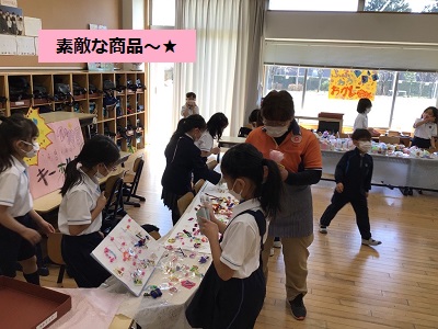1,2年生は素敵なお店を20店舗開店し、教職員も参加して一緒にお買い物を楽しみました。