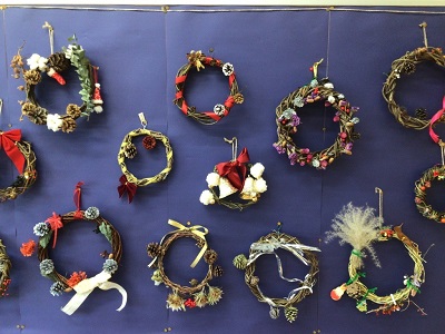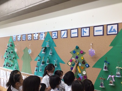 1年生は、巻いたつるに飾り付けをしクリスマスリースを作りました。2年生は、秋にみんなで探した松ぼっくりや木の実に色をつけて、松ぼっくりスノードームを作りました。1階のOSは、子どもたちの作品で溢れ、華やかにクリスマス気分を盛り上げてくれています。