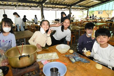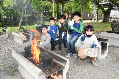 野菜を切り、お肉と炒めるカレー作り班と飯盒でご飯を炊く班に分かれて夕食の準備をしました。出来上がったカレーを全員おいしそうに食べていました。
