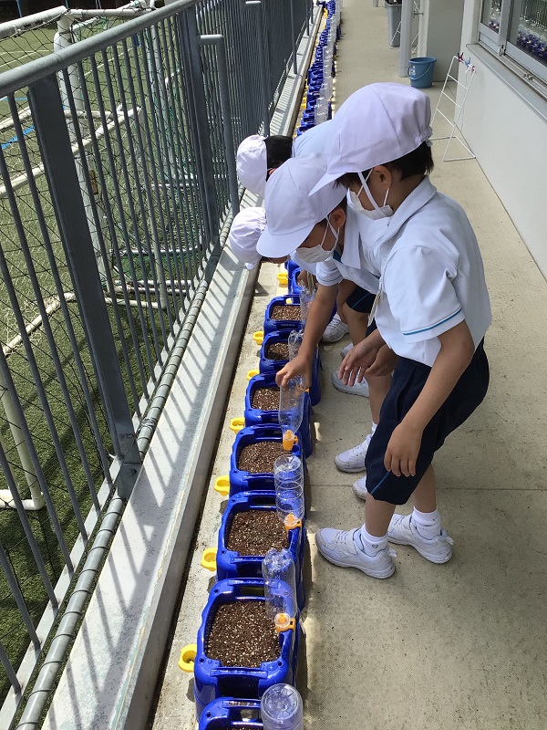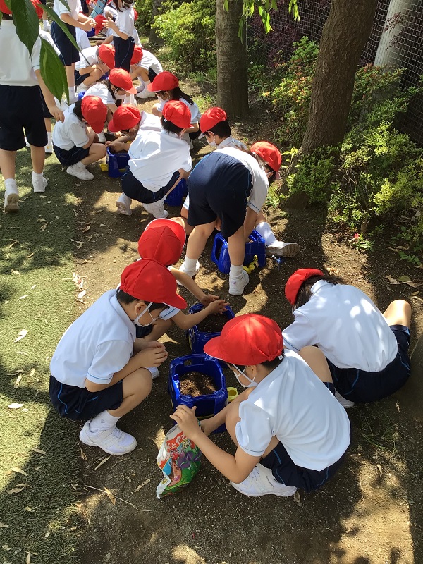 1・2年生であさがおの種まきをしました。