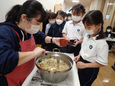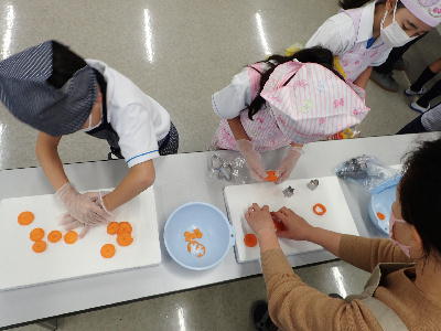 1・2年生は体験の授業で芋汁の調理実習を行いました。