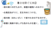 次に、暑さを防ぐ工夫ですが、エアコンばかりでなく次のような工夫もしてみてはどうでしょうか。