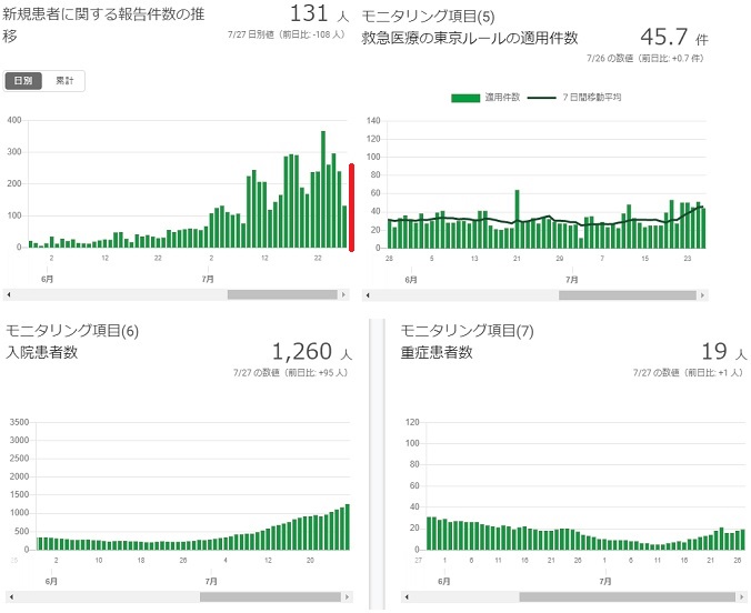 昨日の新規感染者が131人というように日曜日明けということもあり、前日よりかなりダウンしたのも束の間、今日はまた266人というように元に戻りました。
