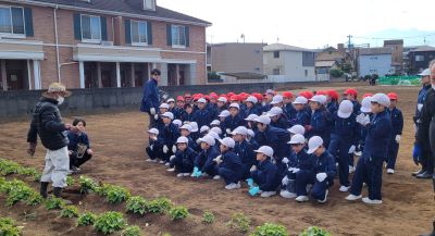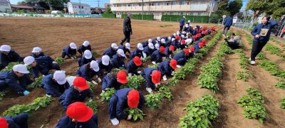1年生は多くの子どもが幼稚園などで経験済みで、手慣れた様子で自分の顔よりも大きなサツマイモを収穫していました。